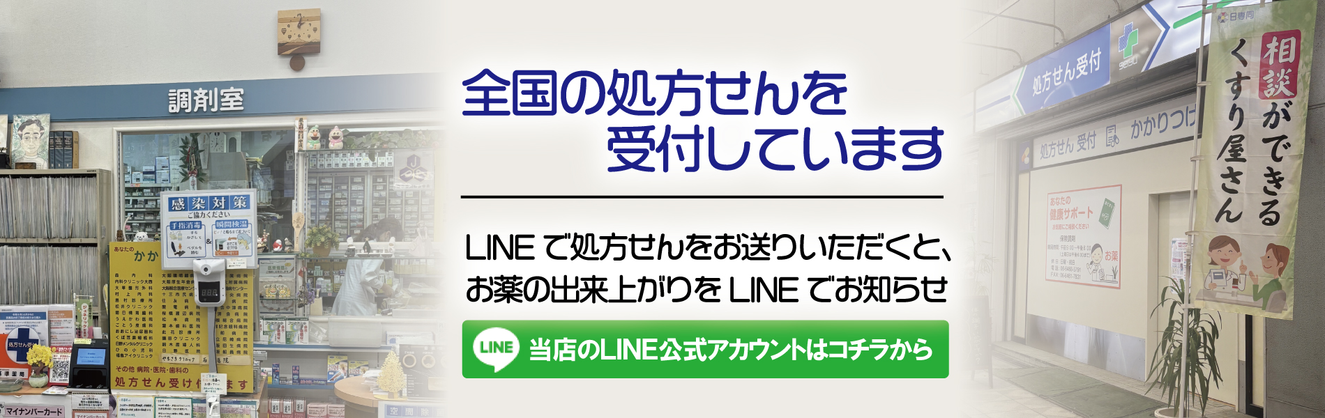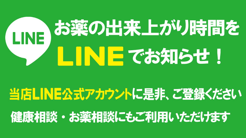 LINEで処方せんをお送りいただき、お薬の出来上がりをご連絡する機能や、LINEでの各種ご相談も承っております。